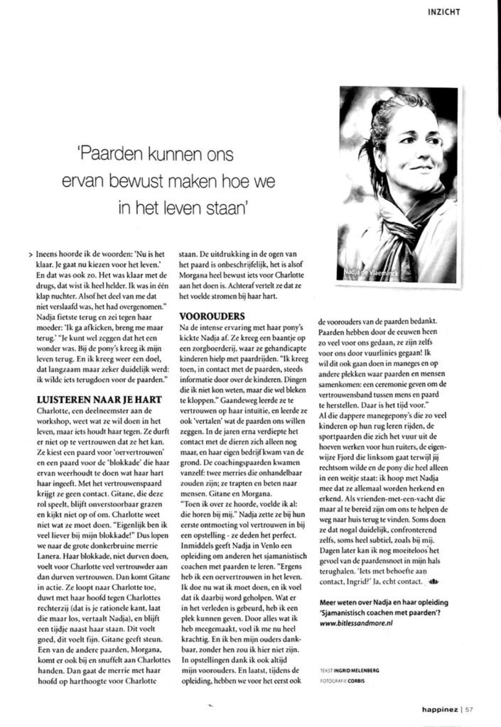 Lees dit bijzondere artikel in de Happinez over het verhaal van Kendres: Paarden als Spiegel.
